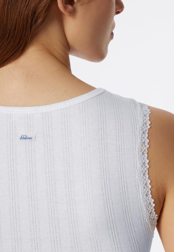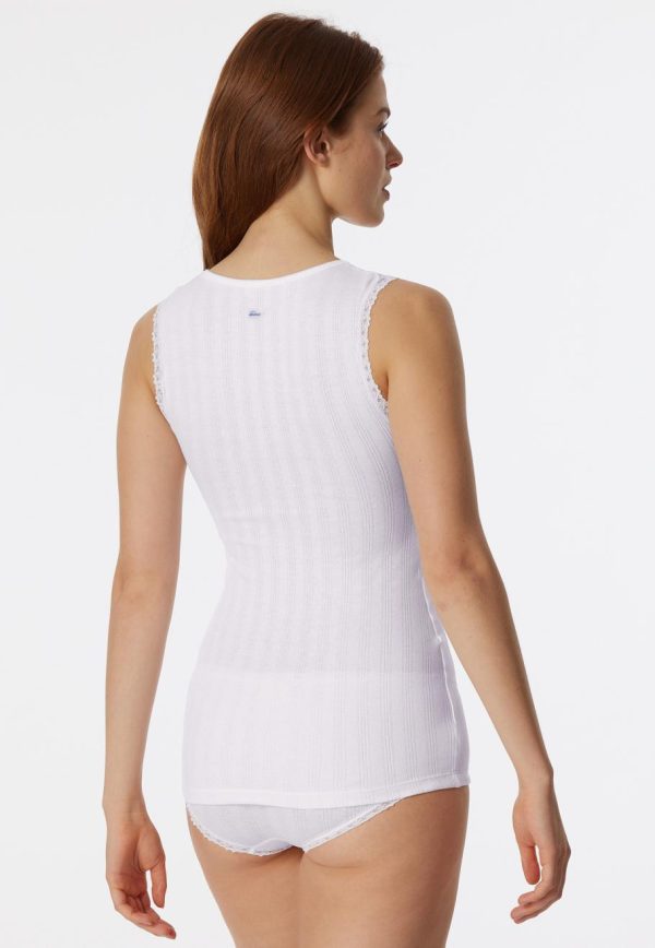 Die Liebliche! Die Revival Wäscheserie Agathe ist seit jeher unser femininer Klassiker. Charakteristisch für die Shirts, Chemisettes oder Pants sind die geblümte Bandspitze, echte Perlmuttknöpfe und der feingerippte Ajouré-Stoff. So hübsch, dass sich die Oberteile auch als Oberbekleidung gut machen. So geht eleganter Retro!