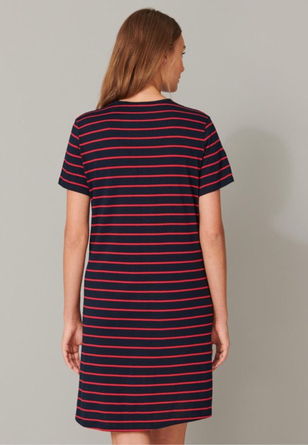 - schwarz-rot geringeltes Kurzarm-Nachthemd für Damen