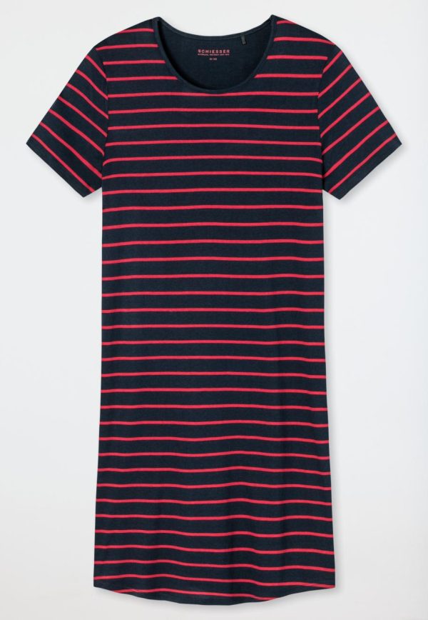 Dieses kurzärmelige, schwarze Nachthemd ist genau das Richtige für entspannte Nächte! Weicher Single Jersey aus Baumwolle und Modal sorgt dabei für hohen Tragekomfort und bekommt mit den roten Ringeln einen modischen Look. Ein schwarz abgesetzter Rundhals-Rand und der abgerundete Saum setzen charmante Details. Ein bequemes Lieblingsstück in bester SCHIESSER Qualität!
