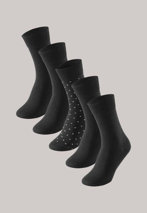 Gleich 5x trifft bei diesen Herrensocken beste Qualität auf ein stilvollen Look. Der hohe Baumwollanteil verspricht dabei ein angenehm weiches Tragegefühl und sorgt im Zusammenspiel mit feinem Polyamid für ein optimales Fußklima. Mit einem Hauch Elastan sowie der handgekettelten Spitze bleiben die Strümpfe immer passgenau und punkten optisch mit einem zeitlosen Design-Mix aus uni-schwarz Modellen und einer gepunkteten Variante. Ein unschlagbarer Socken-5er-Pack!