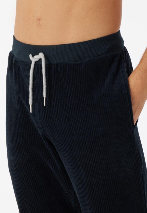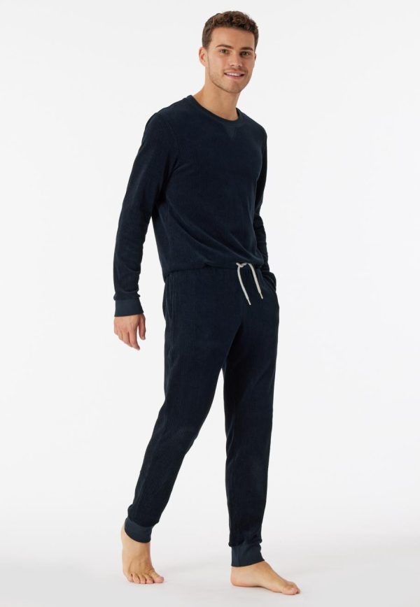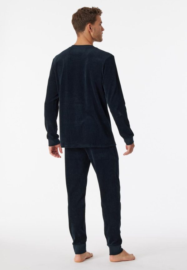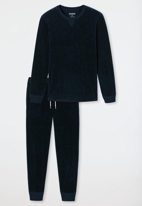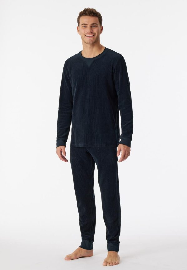 Herren Schlafanzug Lang Kord/Velour Bündchen Streifen Nachtblau Warming Nightwear Nachtblau | SCHIESSER Schlafanzüge