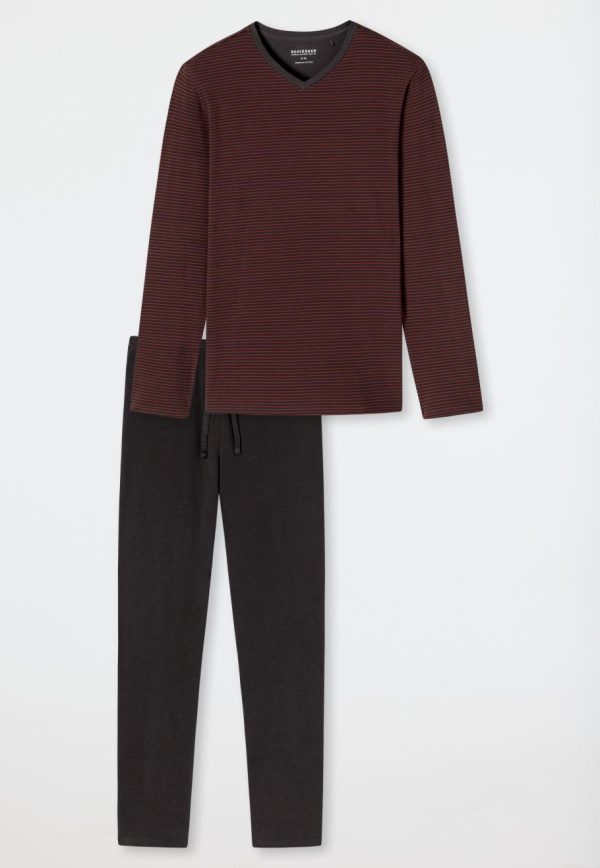 Herren Schlafanzug Lang Organic Cotton V-Ausschnitt Ringel Terracotta/Nightwear Terracotta | SCHIESSER Schlafanzüge