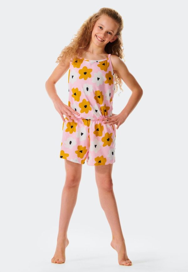 Dieser kurze Jumpsuit ist der perfekte Lieblingsschlafanzug für kleine Fashion Queens! Mit dem geblümten Design in Rosa, Weiß und Gelb sieht der Overall nicht nur trendy aus, sondern ist dank Single Jersey aus 100 % Organic Cotton auch wunderbar bequem. Dafür sorgen ebenfalls die schmalen Träger, welche sich problemlos verstellen lassen. Beste SCHIESSER-Qualität gibt´s obendrein und natürlich unsere Süße-Träume-Garantie!