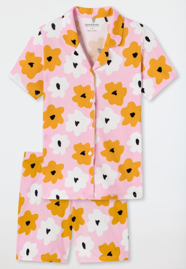 Herrlich soft und super bequem ist dieser kurze Mädchen-Pyjama im sportlichen Design. Weicher Single Jersey aus 100 % Organic Cotton sorgt für ein rundum angenehmes Tragegefühl. In zartem Rosa und mit farbenfrohem Blumen-Muster sieht der Zweiteiler mit Hemdkragen und Knopfleiste einfach nur cool aus. In den lockeren Shorts lässt es sich perfekt zur Ruhe kommen. Für entspannte Träume in bester SCHIESSER-Qualität!