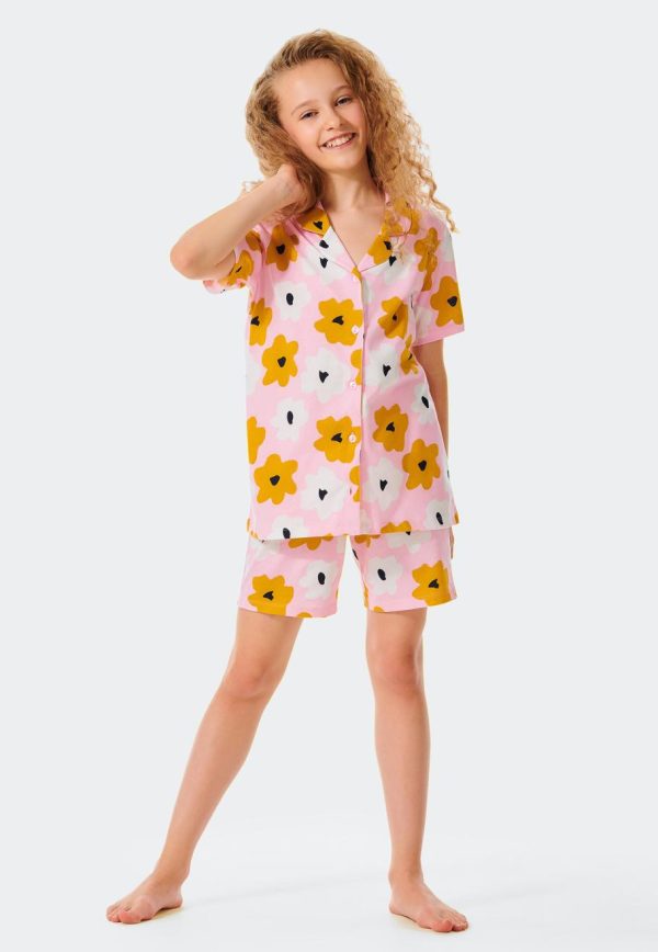 - kurzer, gemusterter Pyjama für Mädchen mit Blumen in Rosa