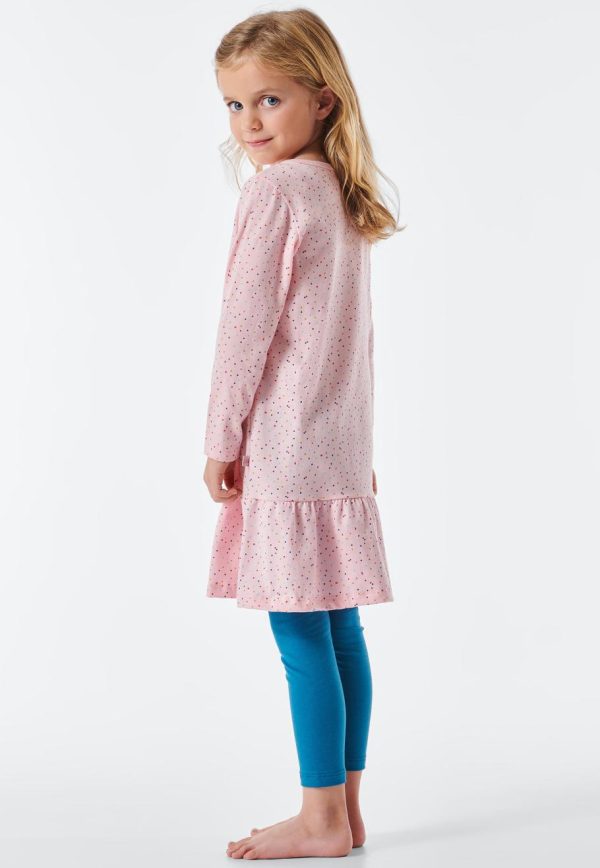 Darf ich bitten? Dieser hübsche lange Mädchenschlafanzug aus der beliebten Nachtwäsche-Serie „Prinzessin Lillifee“ bezaubert alle kleinen Traumtänzerinnen. Im hübschen Tupfen-Look und mit extra Rüschen am Saum ist das Oberteil in Rosa ein echter Blickfang. Auf der Brust strahlt uns Lillifee lässig mit coolen Gold-Glitzer-Effekten entgegen. Die bequeme Leggings in Petrol und 100% Organic Cotton laden zum Kuscheln und Entspannen ein. Wunderschön verspielt in bester SCHIESSER-Qualität!