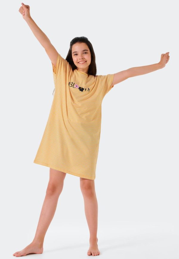 Kinder Sleepshirt Kurzarm Organic Cotton Ringel Blumen Gelb Happy Summer Gelb | SCHIESSER Nachtwäsche