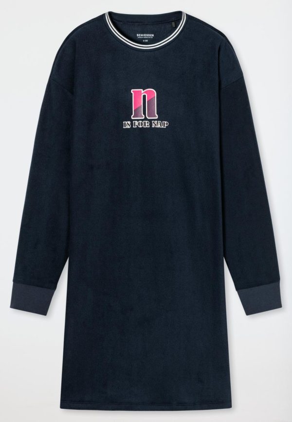 - unifarbenes Design in Nachtblau mit pinkweißem „n IS FOR NAP“-Schriftzug auf der Brust