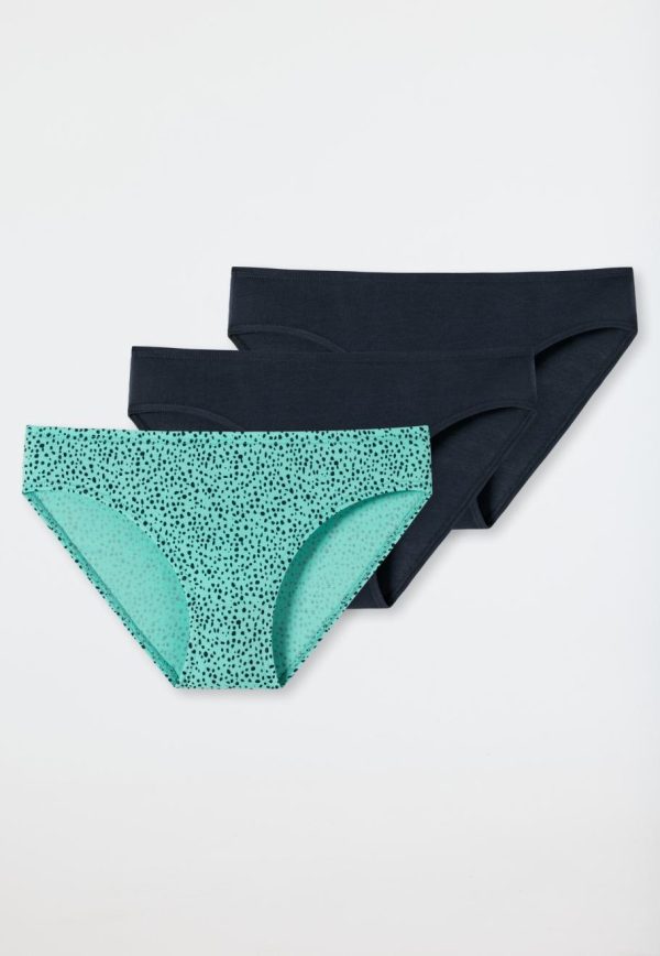 Diese coolen Slips sind das perfekte Wäsche-Trio für trendy Mädchen. Mit schwarzen Punkten auf Mint oder uni dunkelblau – der modische Look überzeugt. Elastisches Single-Jersey-Material aus Organic Cotton und ein softer Bund fühlen sich perfekt am Körper an und sorgen für ein herrliches Tragegefühl. Natürlich in bester SCHIESSER-Qualität!