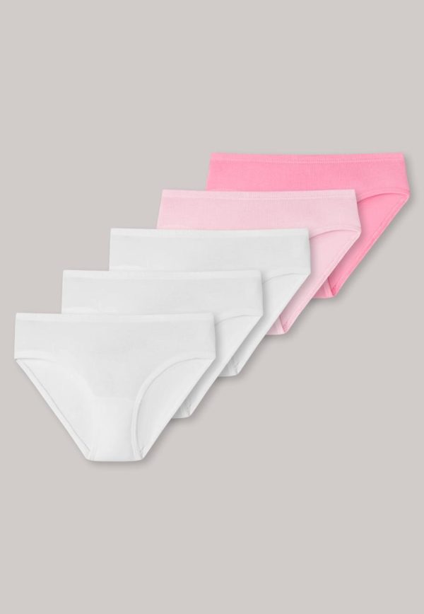 Diese hübschen Slips im praktischen 5er-Pack sind genau das Richtige für alle kleinen Prinzessinen! In frischem Weiß oder unifarben in kräftigem Pink oder zauberhaftem Rosa bringt diese Tagwäsche alle Mädchenaugen zum strahlen. Bestes Single Jersey Material mit hautfreundlichem Organic Cotton und ein softer Bund fühlen sich perfekt am Körper an und sorgen für ein tolles Tragegefühl. Herrlich bequem und wunderschön in bester SCHIESSER-Qualität!